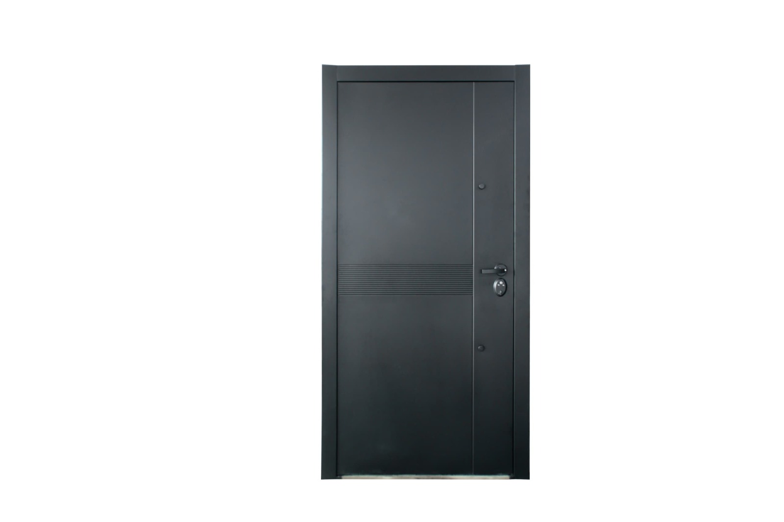 Barral recto negro exterior y picaporte con traba interior.